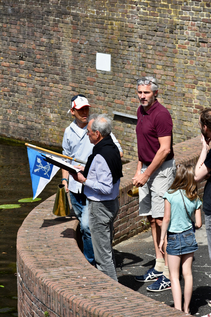 Terwijl er op het water gestoeid werd om de slagzin op te lossen stroomde het terras voller en voller. Er werd volop genoten van de drukte op het water en natuurlijk van het heerlijke zonnetje. Dan is ons terras met recht het mooiste stukje Amsterdam! Toen de laatste toerroeiers binnen waren, nodigden commissaris vloot Bart Breuk en voorzitter Cees Vente de terrasgangers uit om de doop van een nieuwe dubbeltwee bij te wonen. Frederic Dohmen had de eer om het Amstelwater over de boot te laten stromen en de naam van de boot bekend te maken: Dnipro. Dnipro is de naam van een Oekrainse rivier waar door de Oekrainers hopelijk snel weer geroeid kan worden. Het bestuur heeft laten weten om materiaal dat wordt afgestoten beschikbaar te stellen aan Oekrainse roeiverenigingen, waarmee we een kleine bijdrage hopen te leveren aan de wederopbouw zodra het land uit de oorlog is.